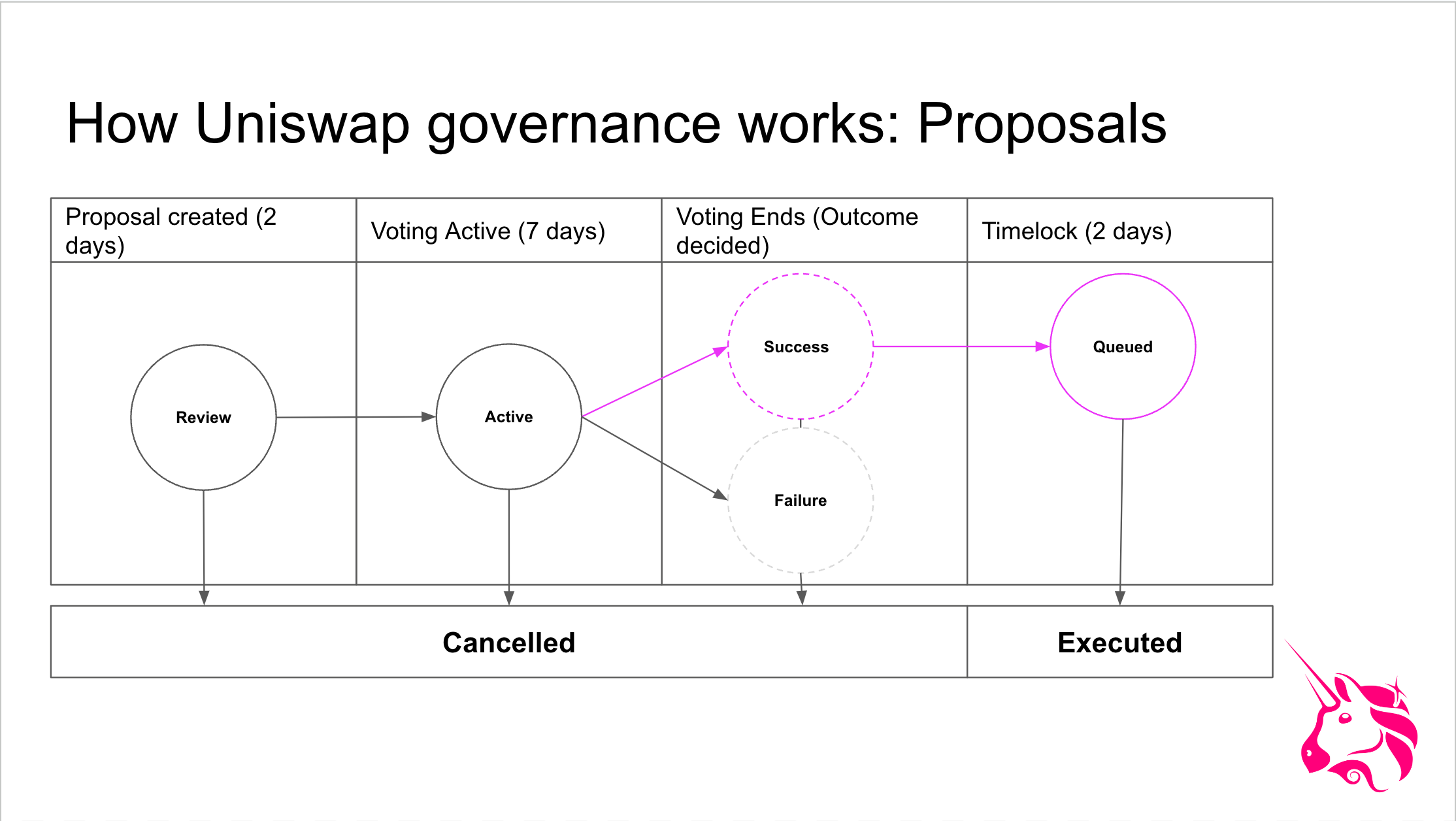 Below we outline the current Uniswap governance process, detailing where these venues fit in. These processes are subject to change according to feedback from the Uniswap community.
